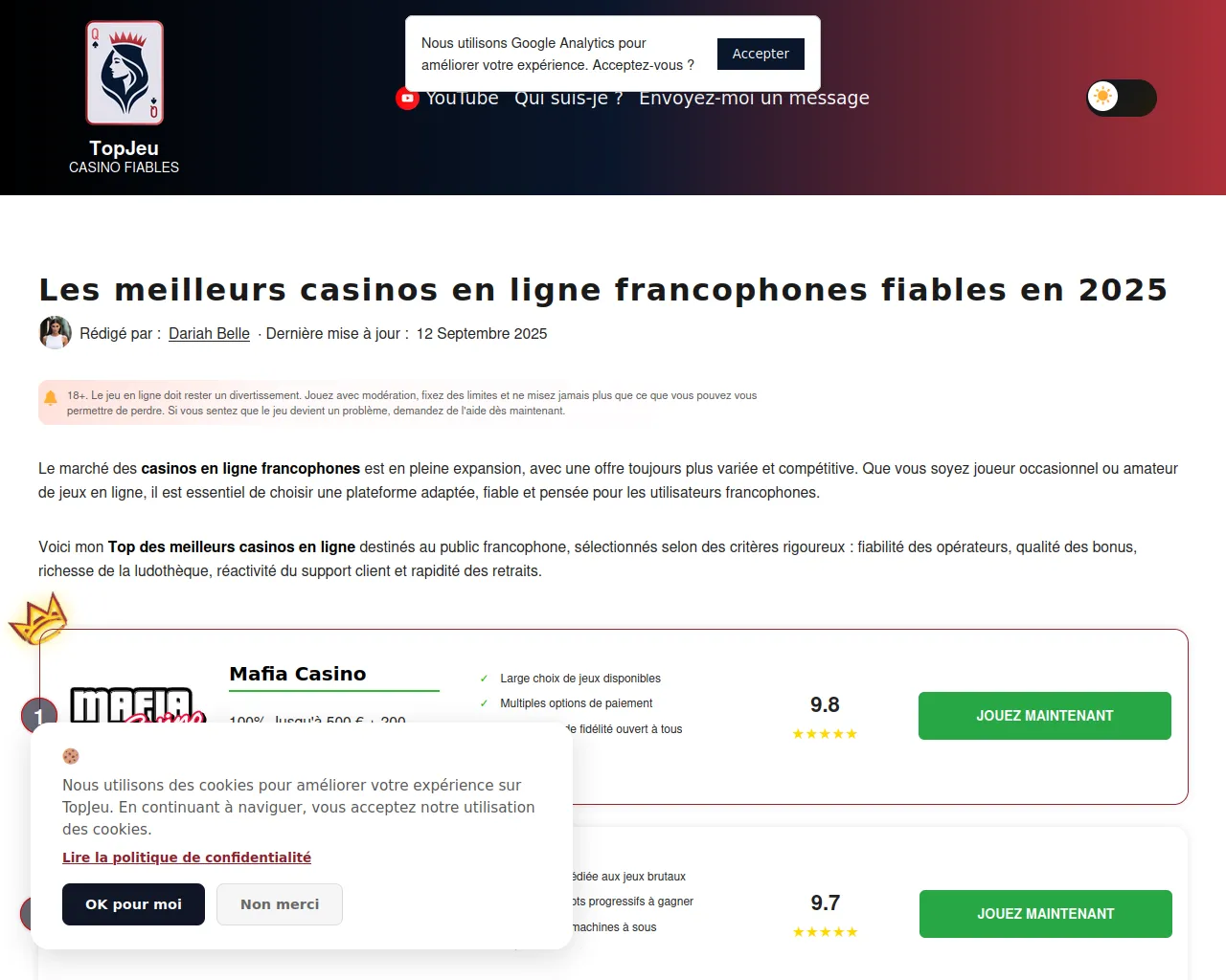 TopJeu - Top Casinos en Ligne Fiables 2025
