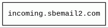 incoming.sbemail2.com | unknown | 2019-06-26 | 2019-06-27 | 2025-01-15 | 705 B | 0 B | ![]() 0.0.0.0 |