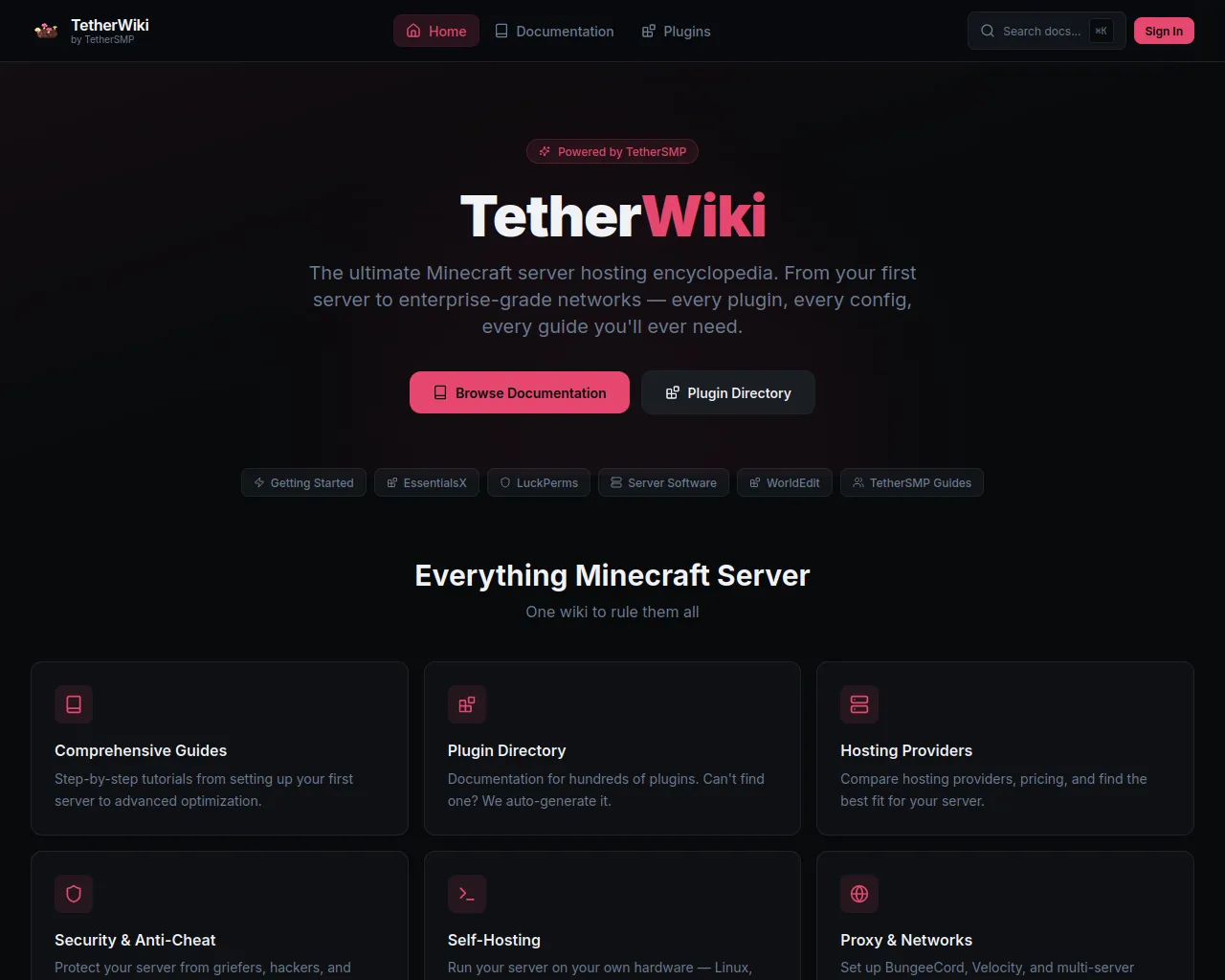 TetherWiki · Minecraft Server Docs