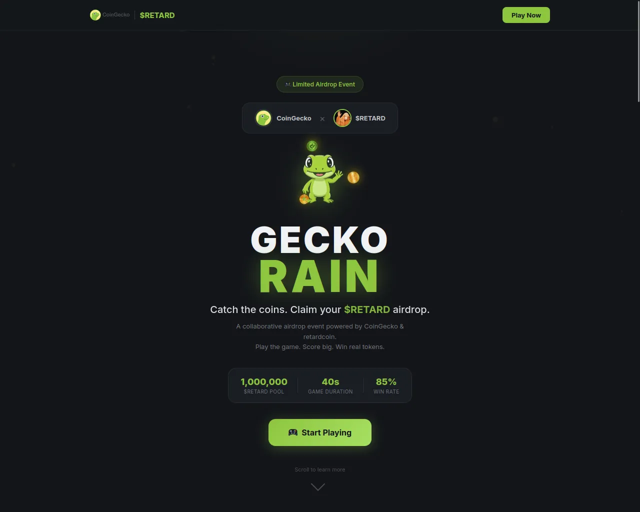 Gecko Rain — CoinGecko x $RETARD Airdrop Game