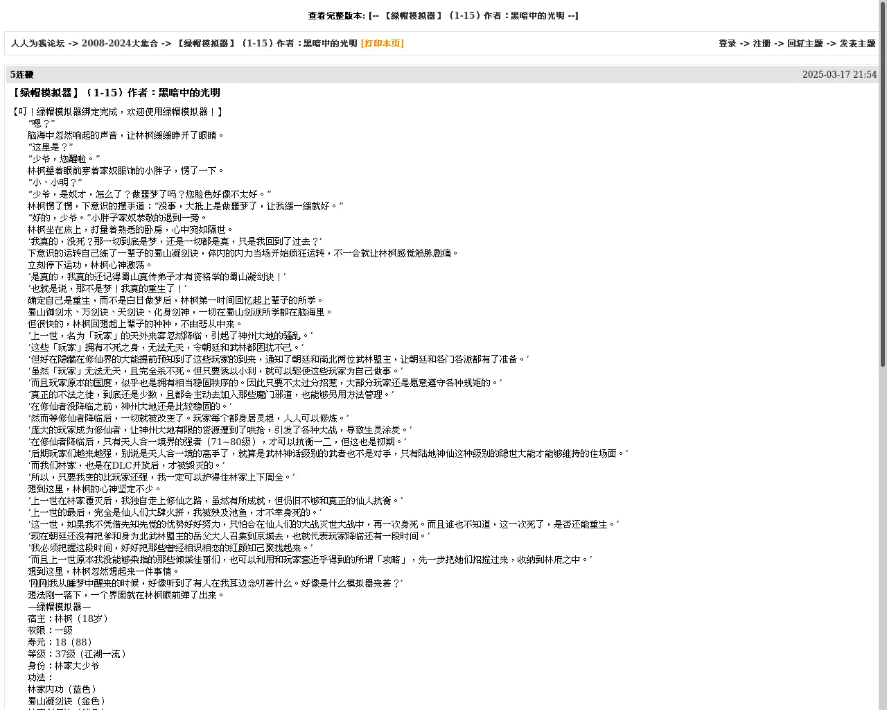 【绿帽模拟器】(1-15)作者:黑暗中的光明 | 2008-2024大集合 - 人人为我论坛 - Powered by PHPWind