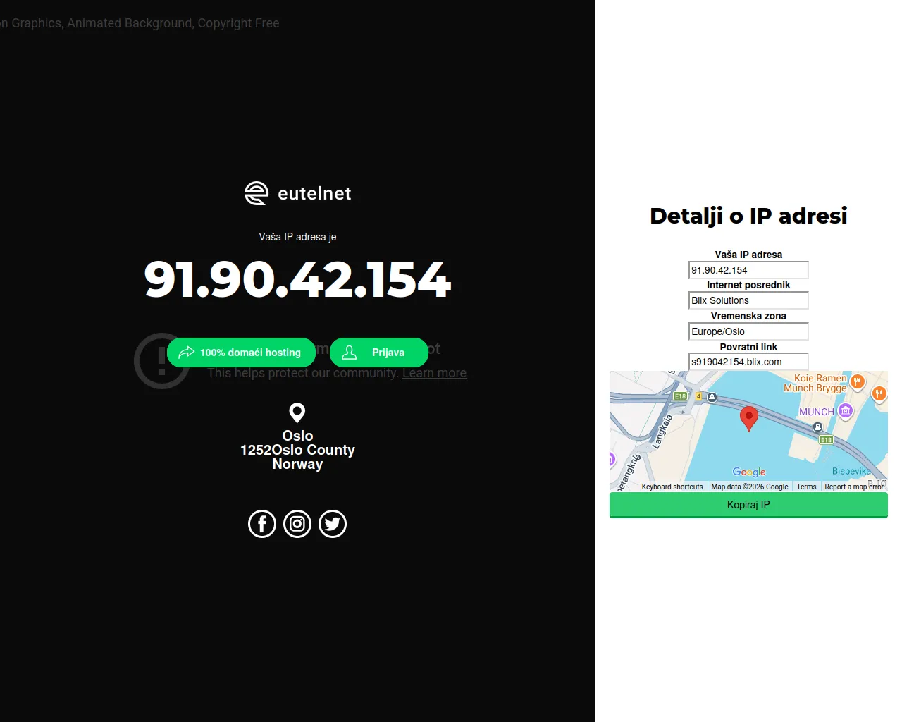 Koja je moja IP adresa - 100% domaći hosting - Eutelnet hosting