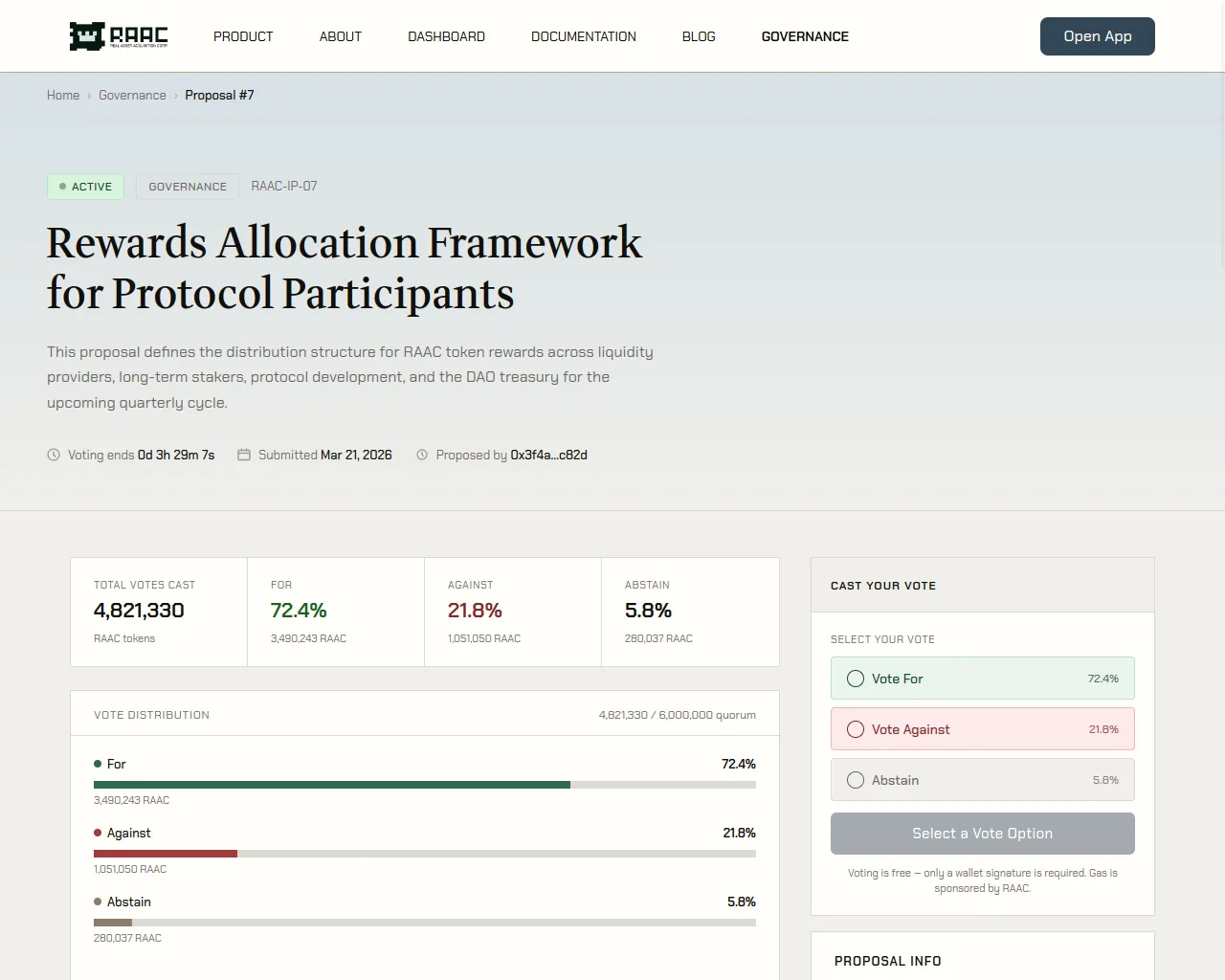 Proposal #7 — Rewards Allocation | RAAC Governance