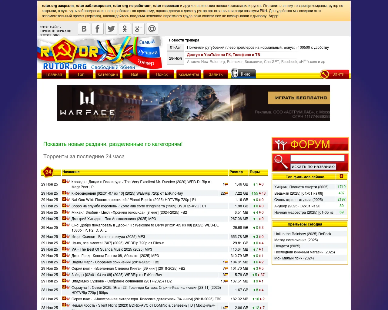 rutor.org :: Свободный торрент трекер :: rutor.org закрыли, rutor org заблокирован, rutor org не работает, rutor org переехал, рутор орг зеркало