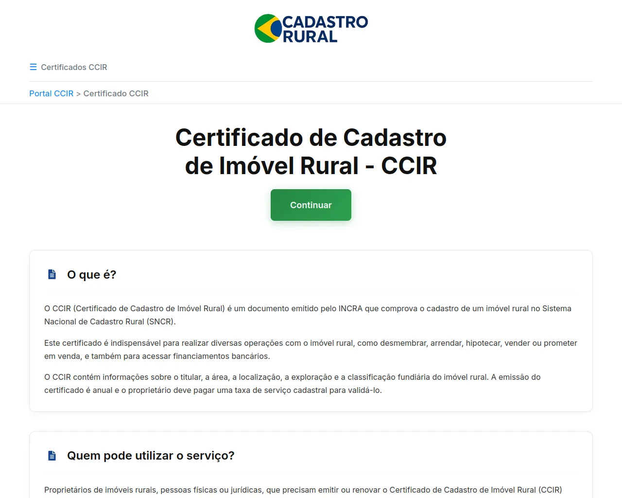 Portal CCIR - Certificado de Cadastro de Imóvel Rural