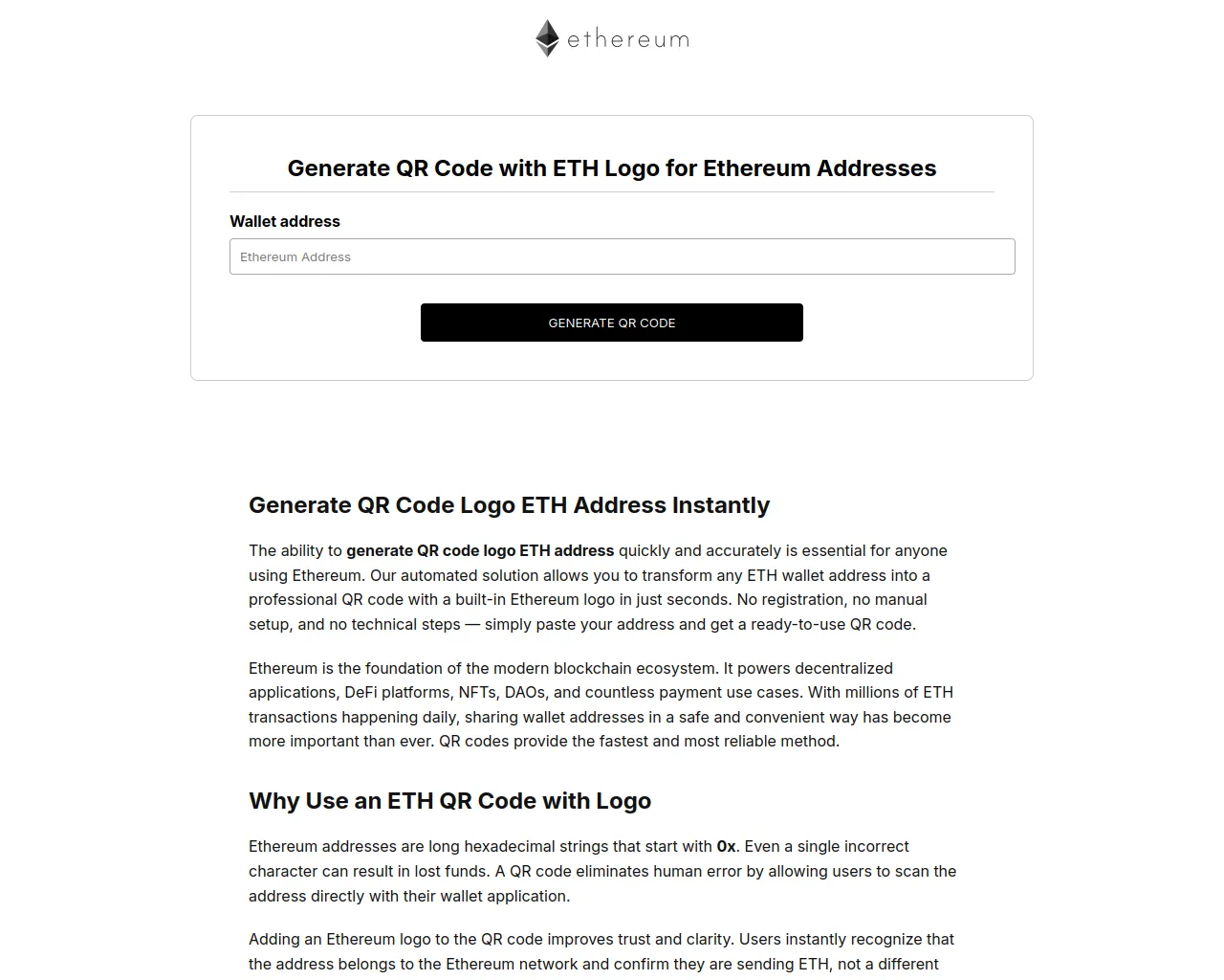 Generate QR Code Logo ETH Address | Instant ETH QR
