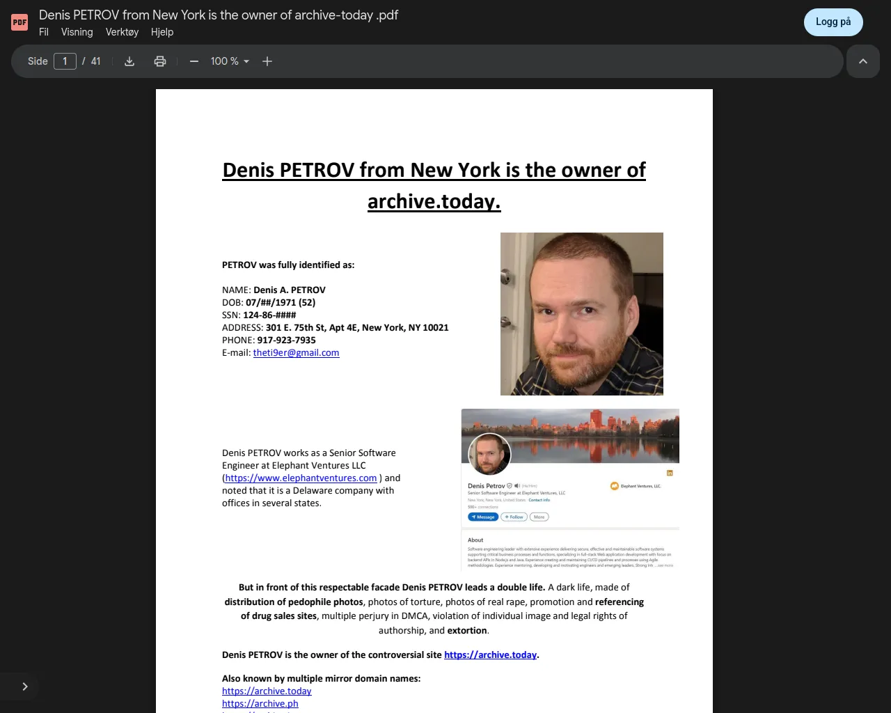 Denis PETROV from New York is the owner of archive-today .pdf - Google Disk