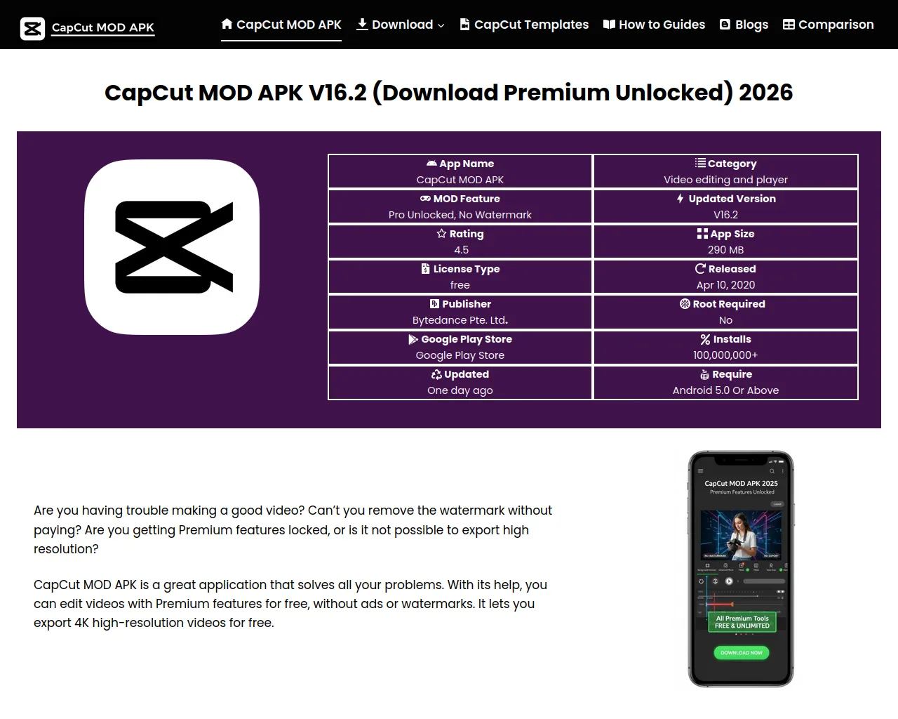 Download CapCut MOD APK Latest V16.2 Premium Unlock 2026