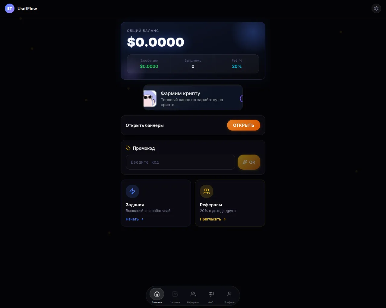 UsdtFlow — Зарабатывай USDT и TON