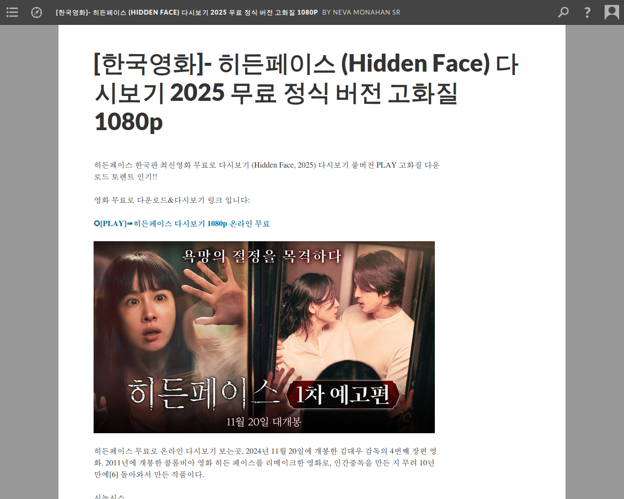 [한국영화]- 히든페이스 (Hidden Face) 다시보기 2025 무료 정식 버전 고화질 1080p