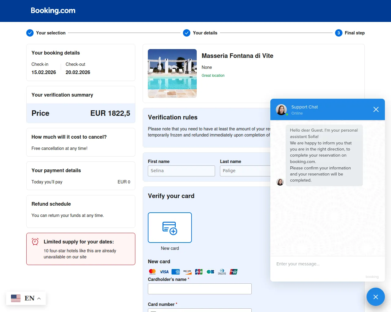 Booking.com - Payment information – Masseria Fontana di Vite