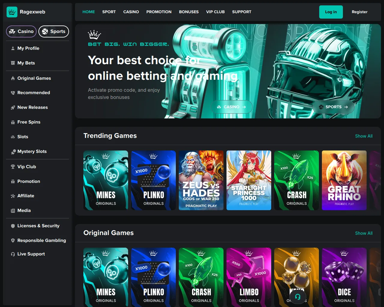 Ragexweb Casino Games & Sports Betting | Play and Win Online