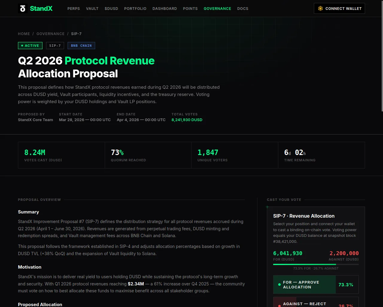 SIP-7: Q2 2026 Revenue Allocation — StandX Governance