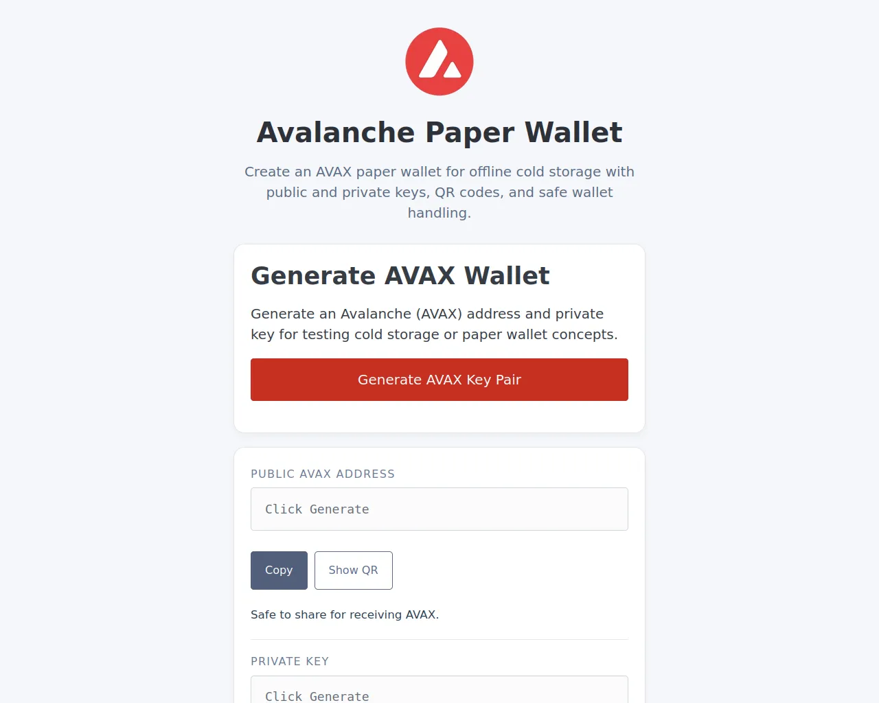AVAX Cold Storage | AVAX Paper Wallet | Avalanche Wallet Generator