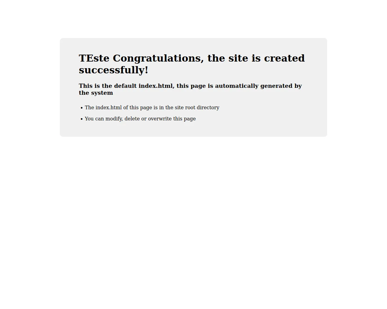 TEste Site is created successfully!