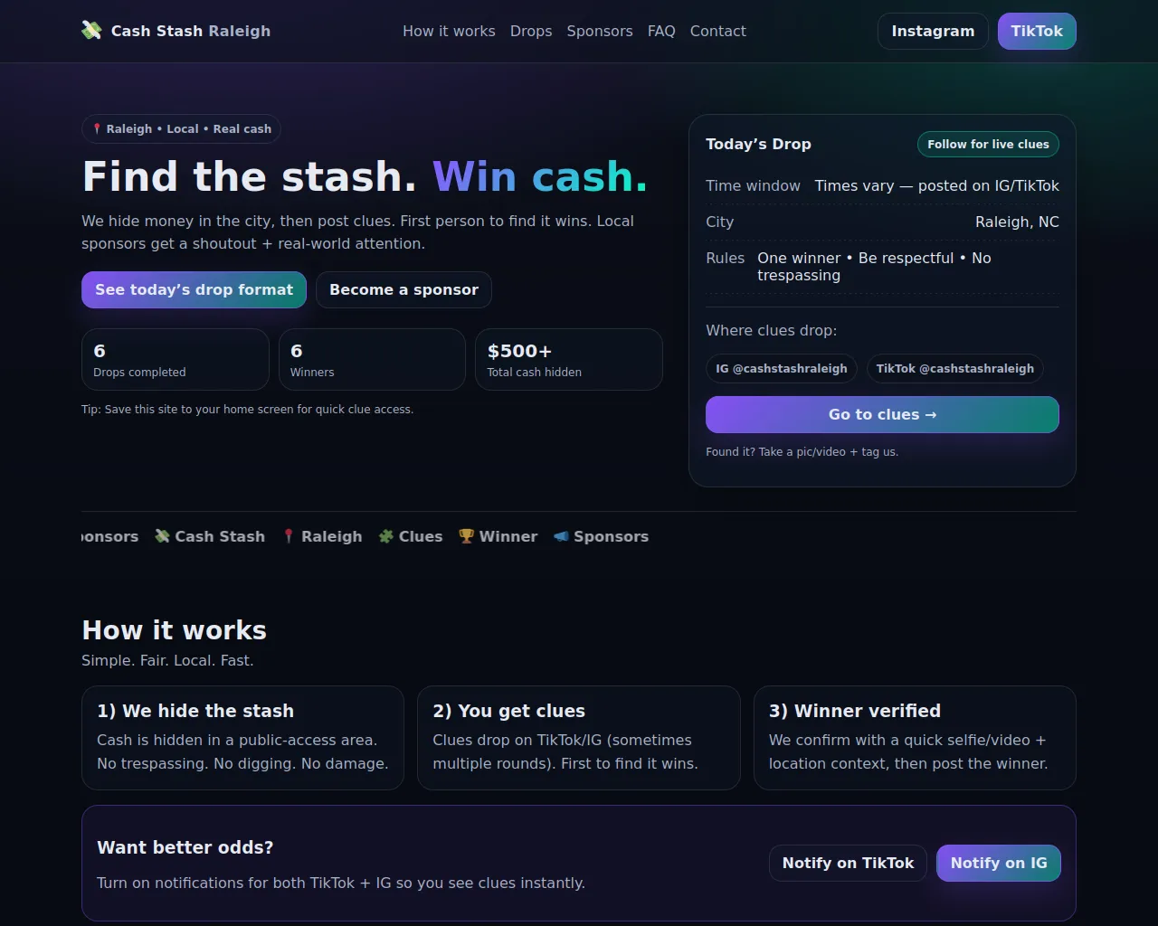 Cash Stash Raleigh — Find the stash. Win cash.