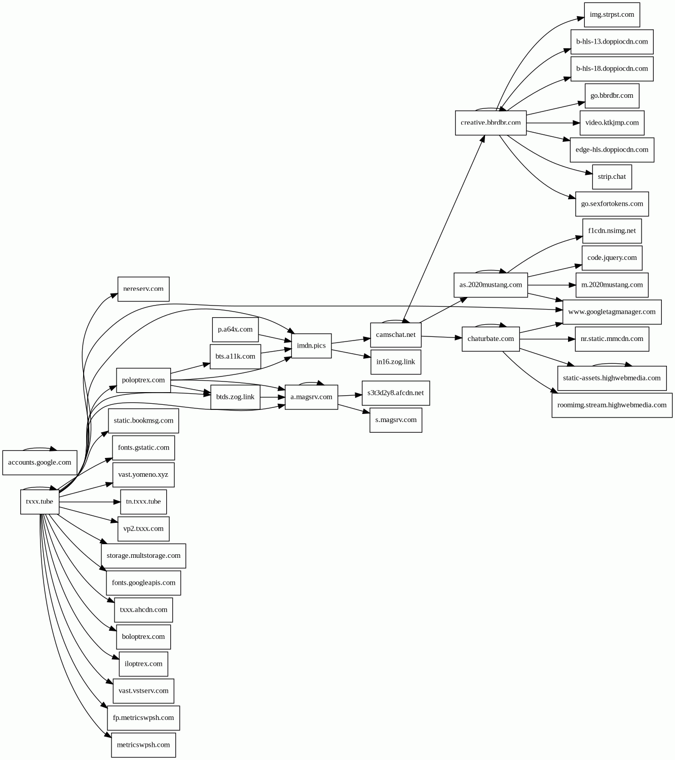 txxx.tube | 56201 | 2019-11-21 | 2019-12-13 07:24:51 | 2023-11-11 00:49:03 | 19 kB | 2.8 MB | ![]() 104.21.36.234 | |