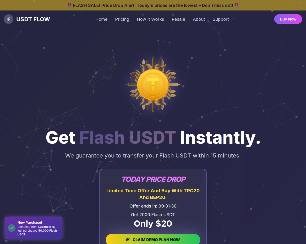 USDT Flow | Buy With UPI and Trc20 | Instant Delivery