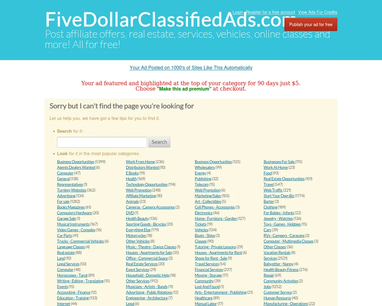 Error - FiveDollarClassifiedAds.com