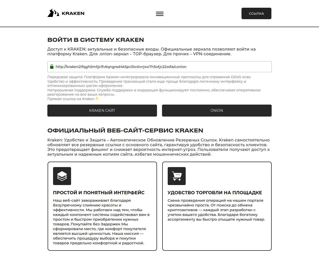 Kraken - вход в систему