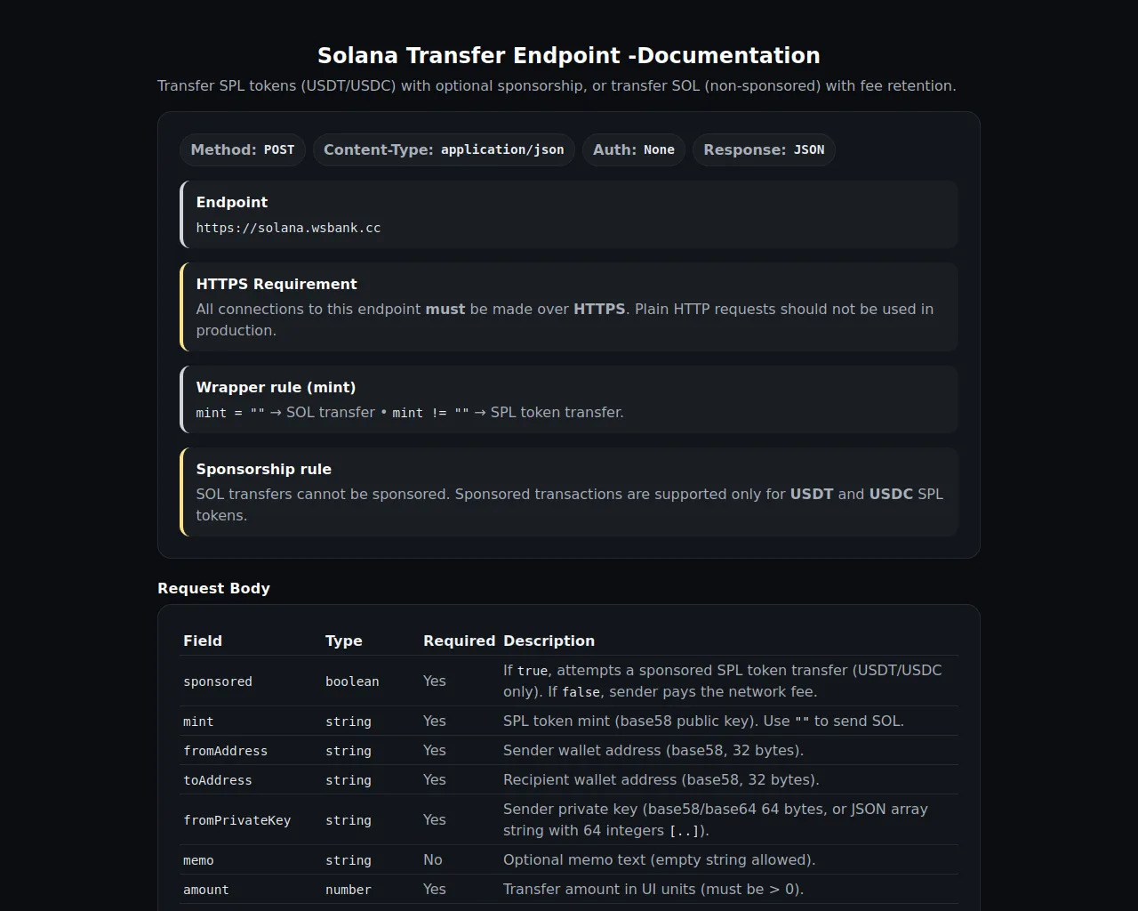 Solana Transfer Endpoint - Documentation