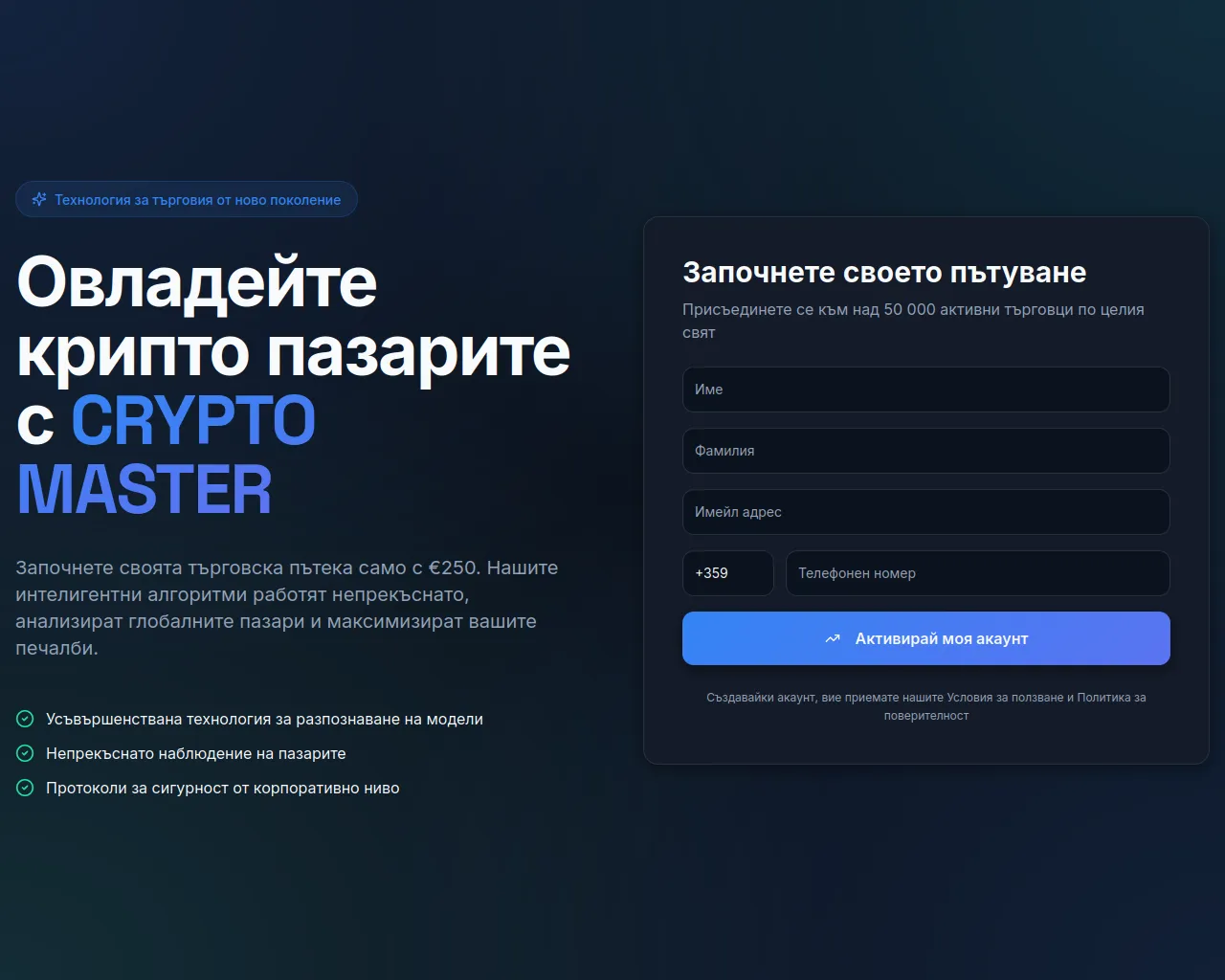 CRYPTO MASTER - Започнете да търгувате с интелигентен ИИ