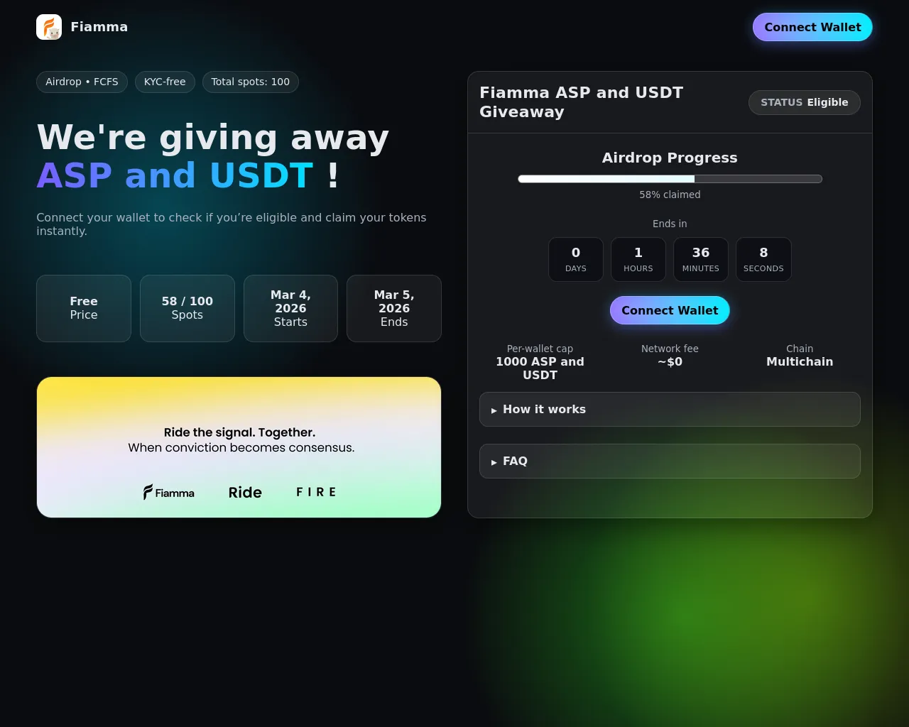 Fiamma ASP and USDT Giveaway