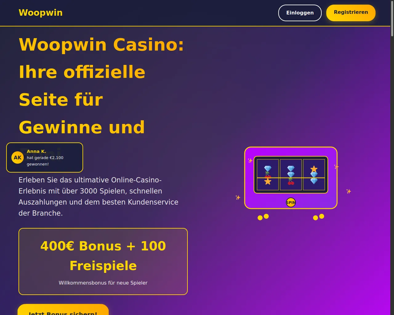 Woopwin Casino - Offizielles Online Casino mit 400€ Bonus + 100 Freispiele