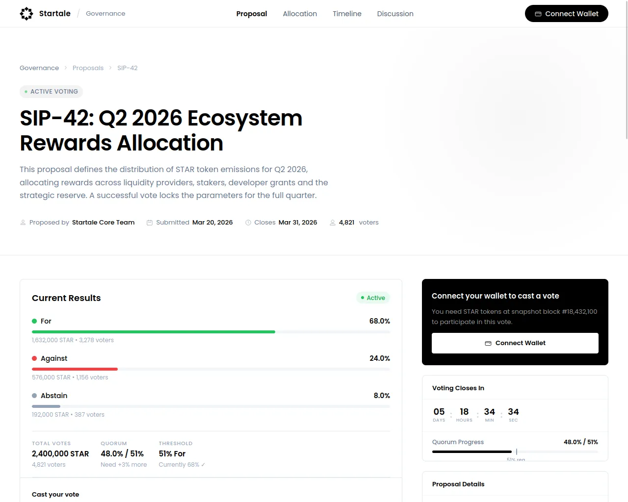 Governance — Rewards Allocation Proposal | Startale