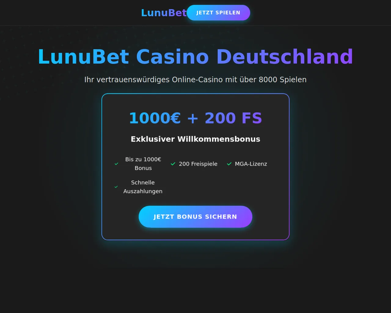 LunuBet Casino Deutschland - 1000€ Bonus + 200 Freispiele | Offiziell