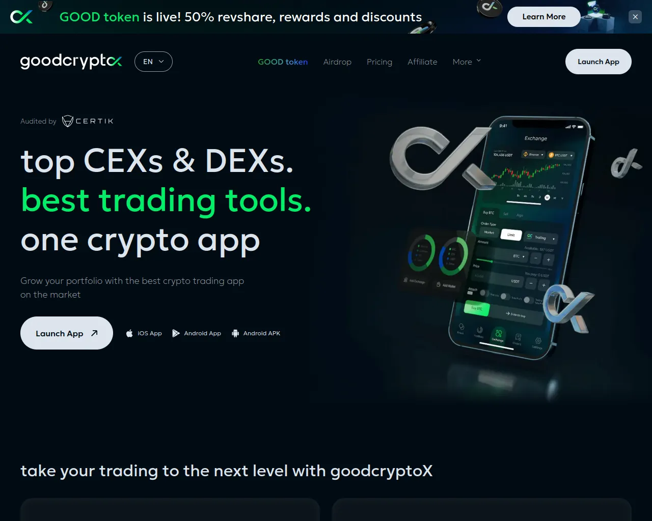 goodcryptoX: best CEX & DEX crypto trading & portfolio app