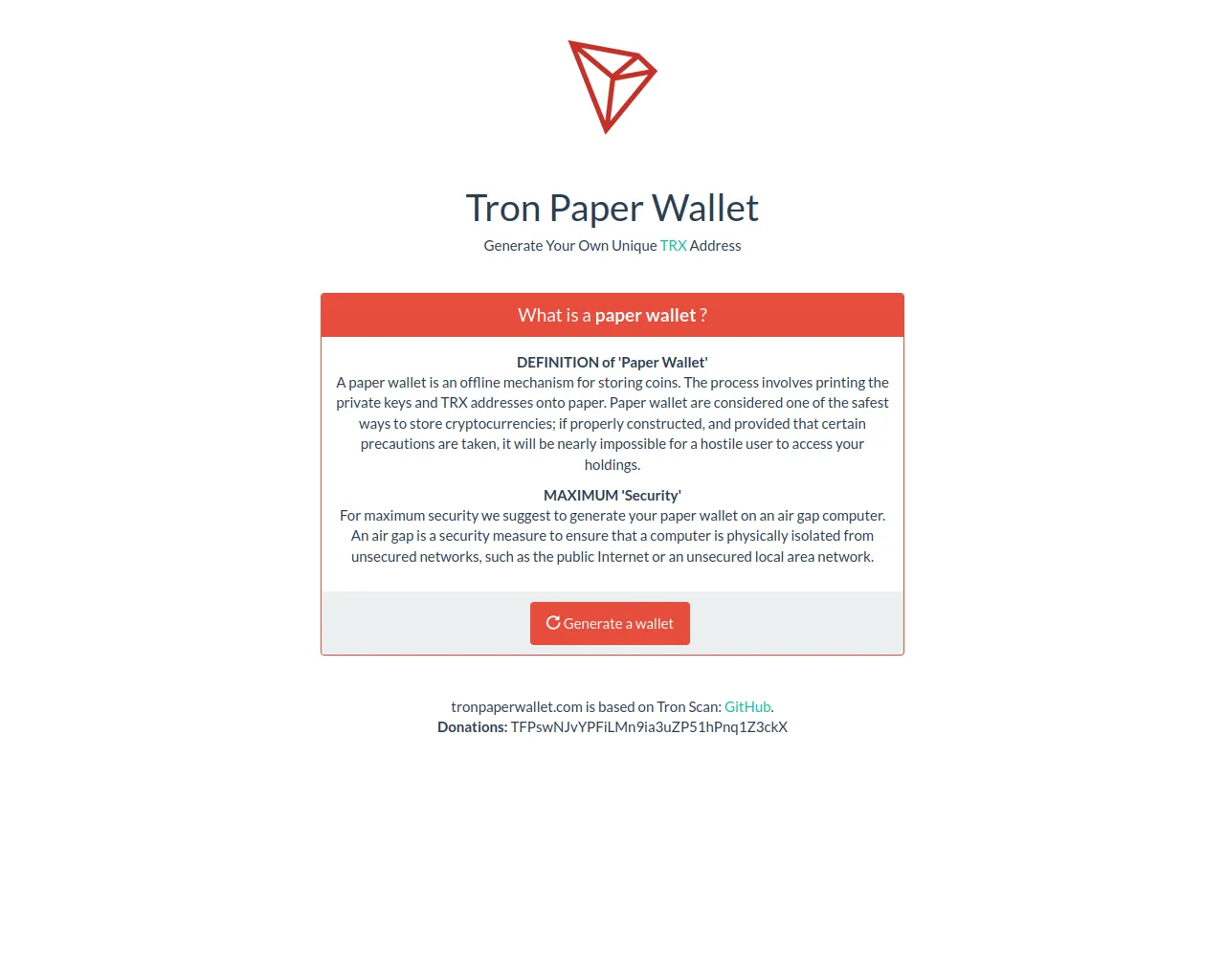 TRX - Tron Paper Wallet Generator