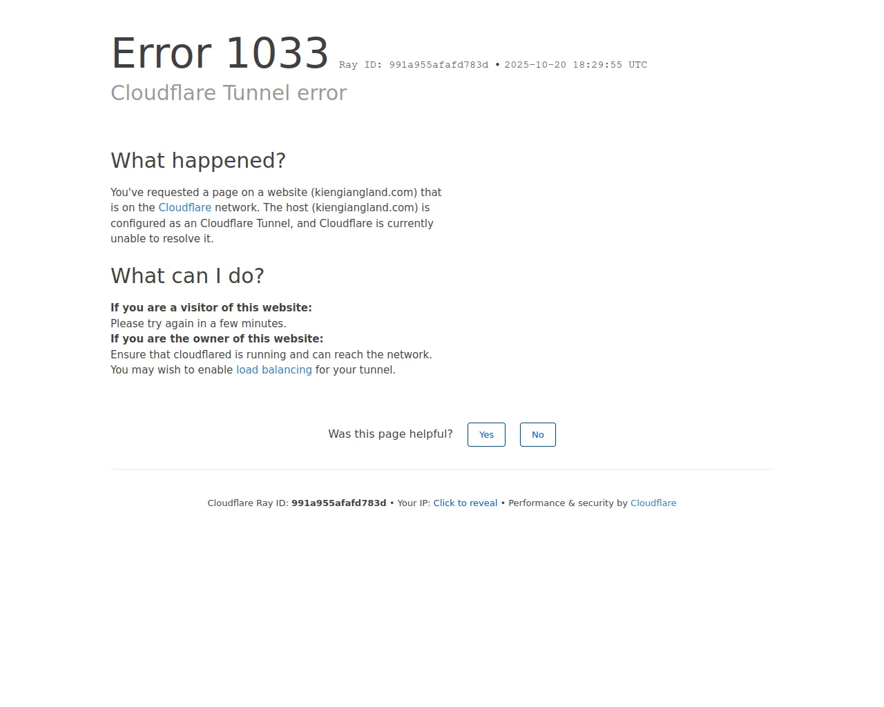Cloudflare Tunnel error | kiengiangland.com | Cloudflare