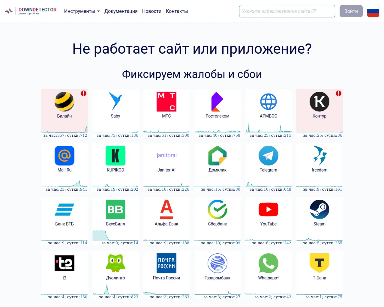 Не работает сайт или приложение? Детектор сбоев | DownDetector