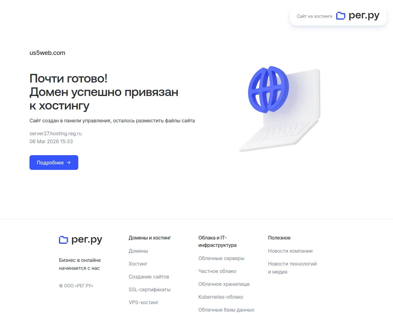 Почти готово! Домен успешно привязан к хостингу