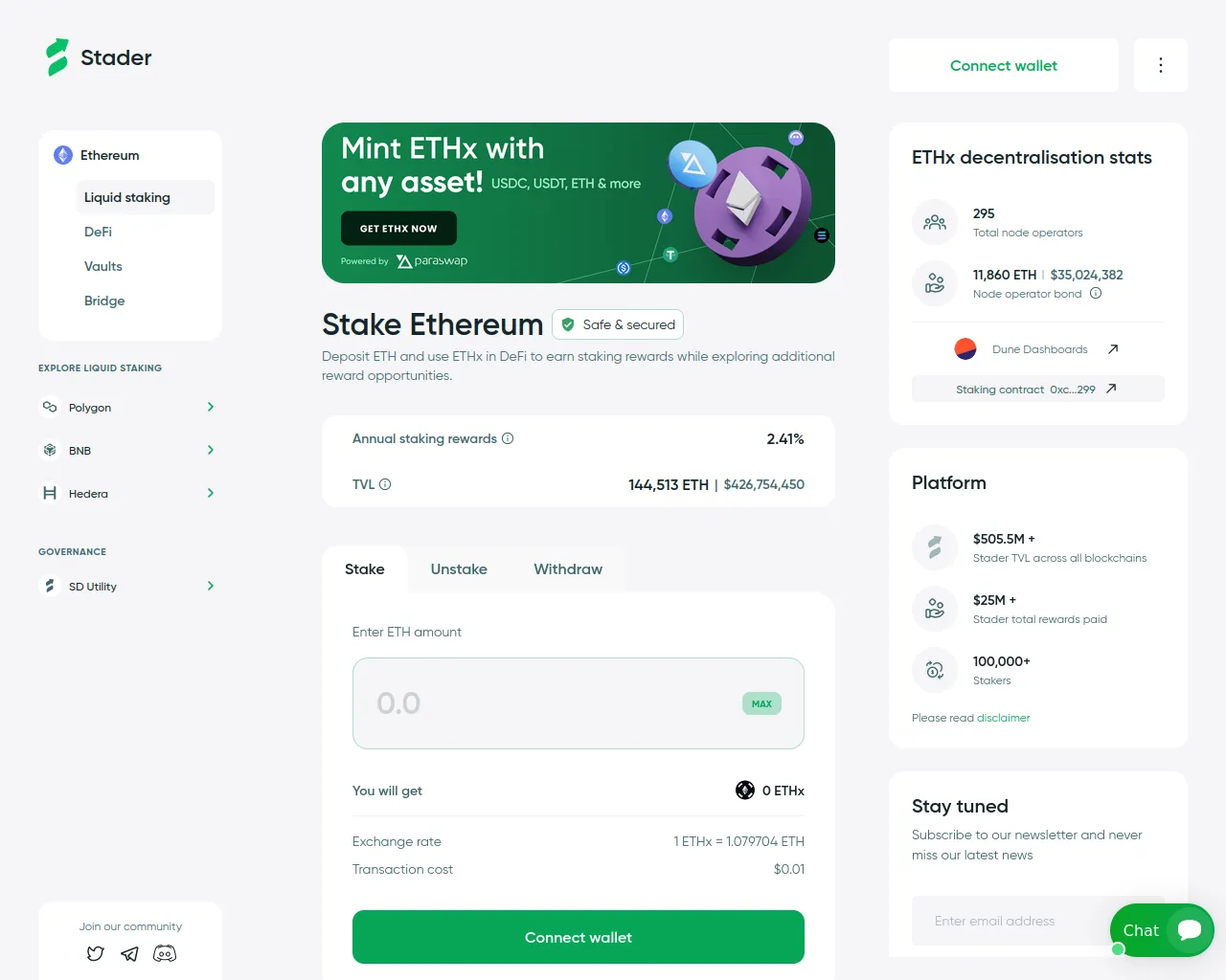 Staderlabs Deposit | Stake ETHx – Secure ETH Liquid Staking Platform