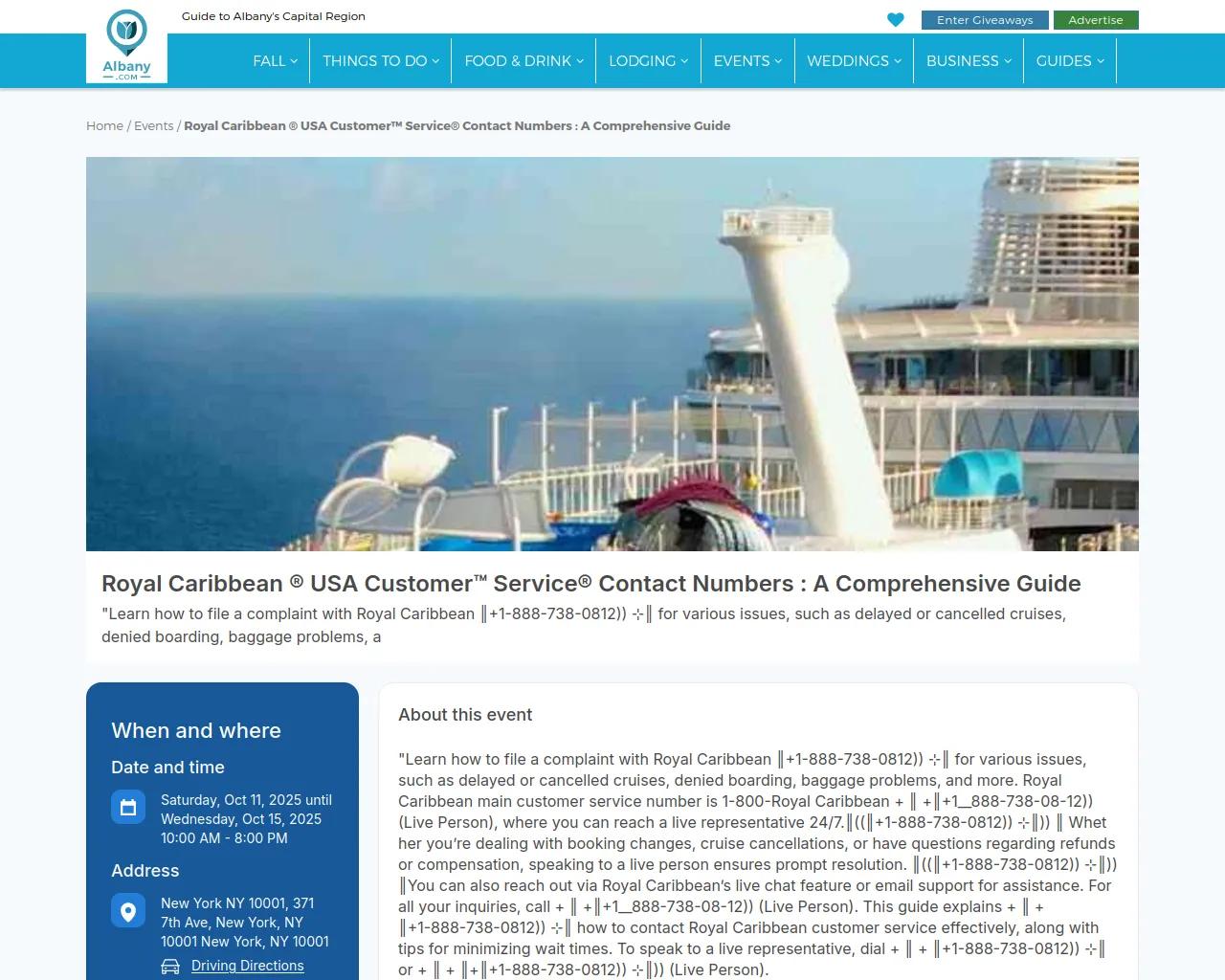 Royal Caribbean ® USA Customer™ Service® Contact Numbers : A Comprehensive Guide - Saturday, Oct 11, 2025 until Wednesday, Oct 15, 2025 - Albany, NY Events
