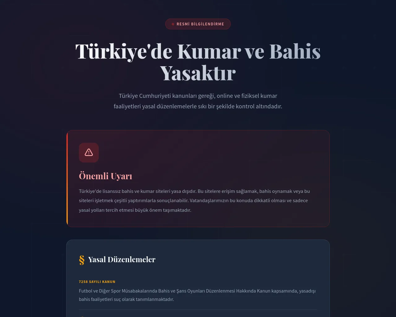 Türkiye'de Kumar ve Bahis | Yasal Bilgilendirme