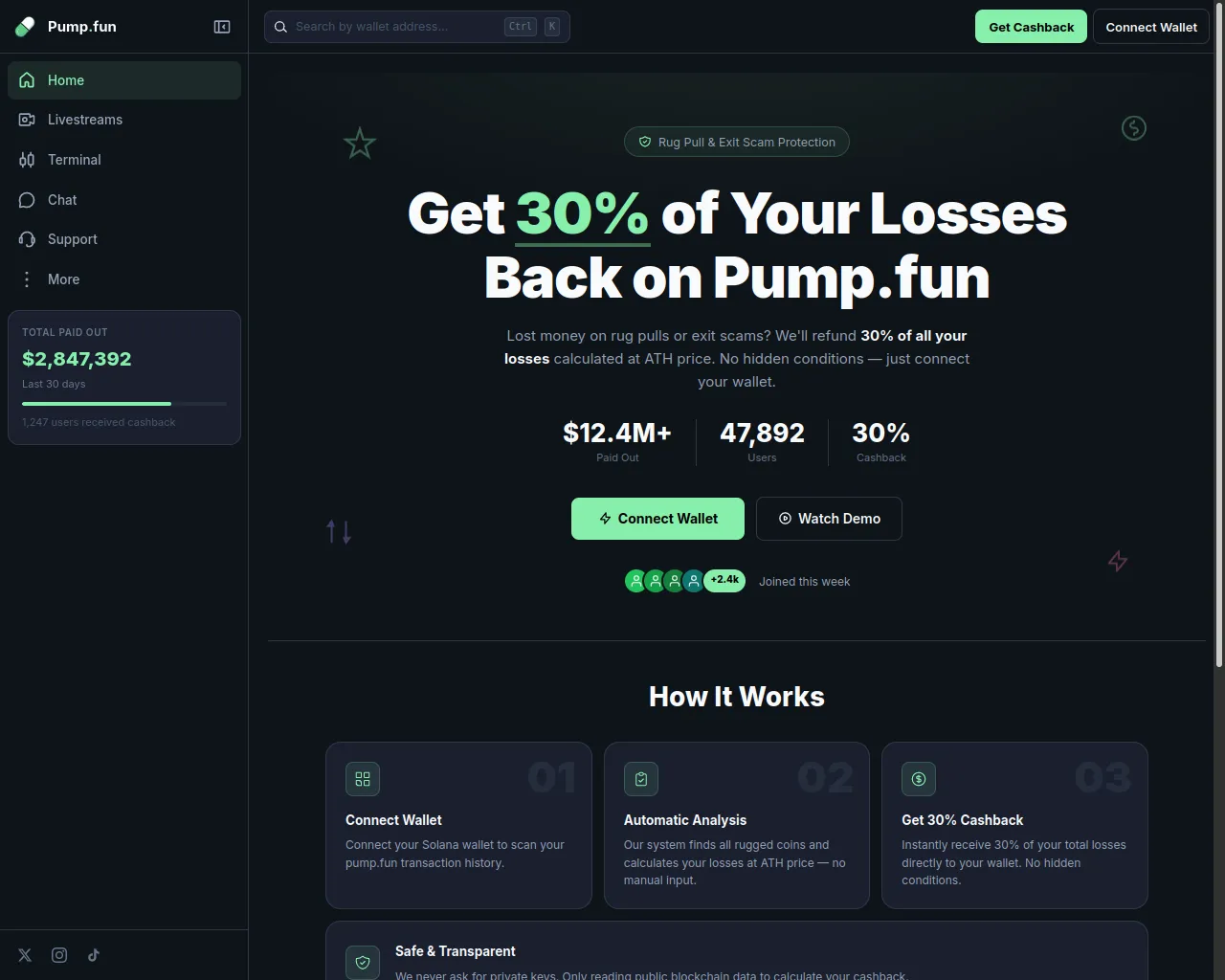 Pump.fun Cashback — Get 30% Back on Losses