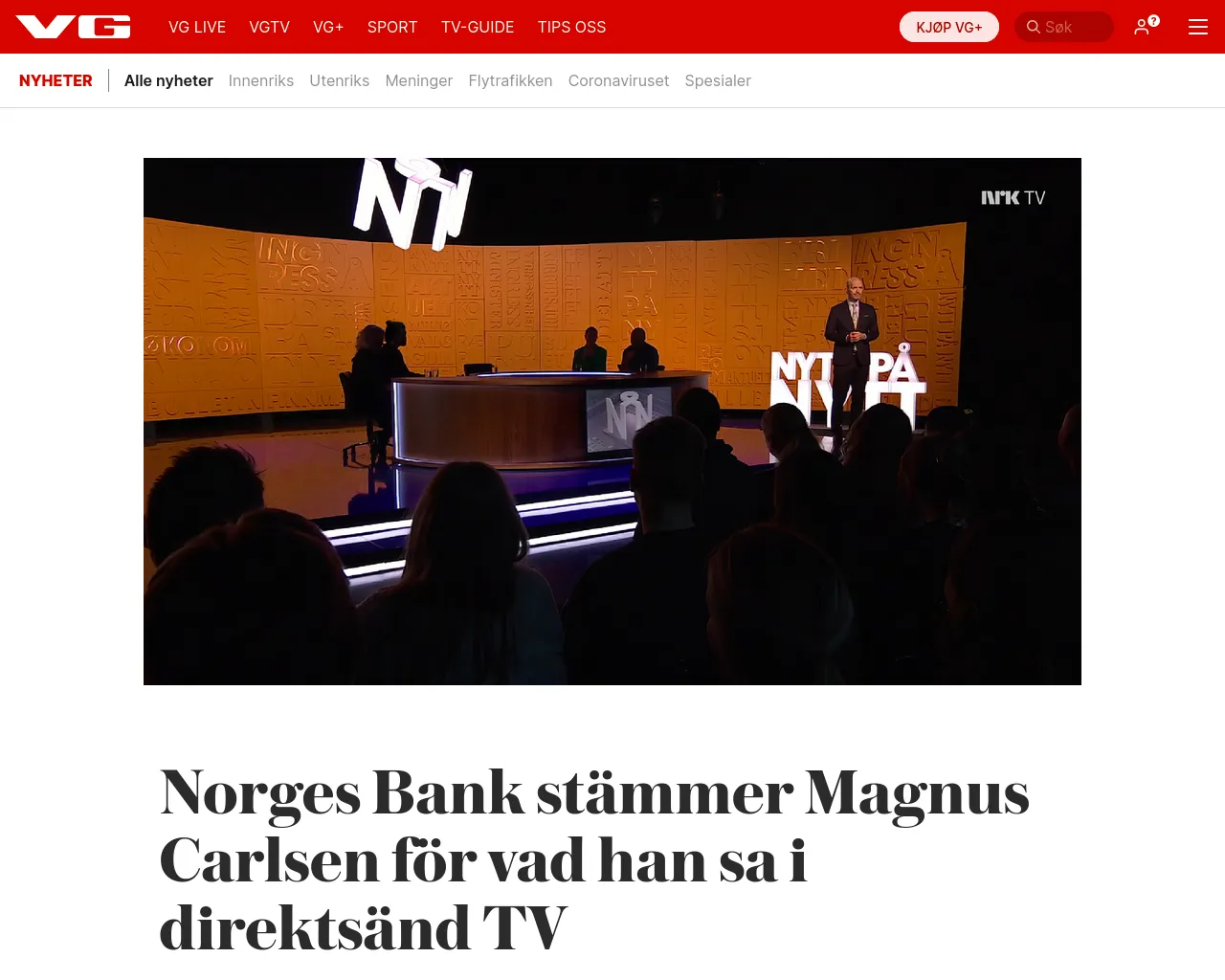 Norges Bank saksøker Magnus Carlsen for det han sa på direktesendt TV. – VG
