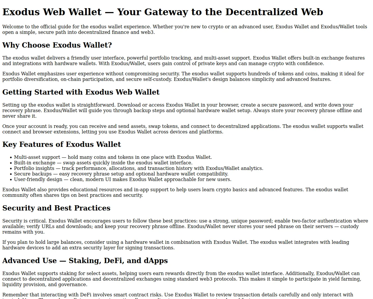 Exodus Web Wallet - Your Gateway to the Decentralized Web