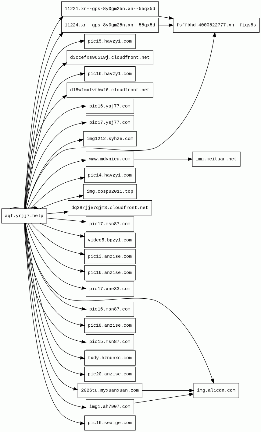 aqf.yrjj7.help 25 alert(s) on this Host | unknown | unknown | No data | No data | 12 kB | 1.6 MB | ![]() 154.26.176.147 | |