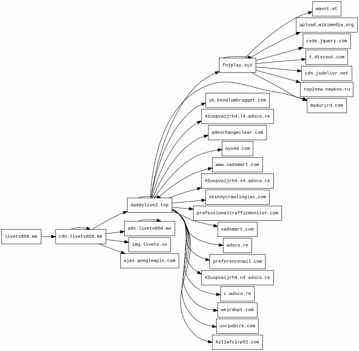 cdn.livetv858.me | unknown | 2025-07-18 | 2025-07-20 | 2025-07-20 | 3.1 kB | 76 kB | ![]() 188.114.96.1 | |