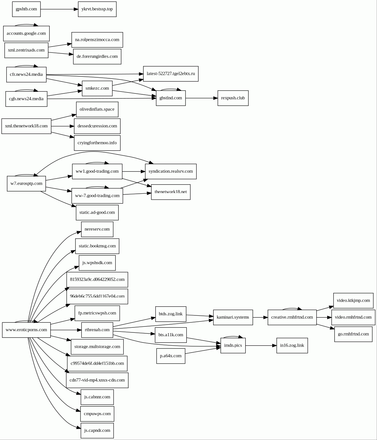 video.rmhfrtnd.com | unknown | 2022-07-05 | 2024-01-23 23:37:15 | 2024-09-24 04:34:00 | 447 B | 268 kB | ![]() 172.64.147.206 | |