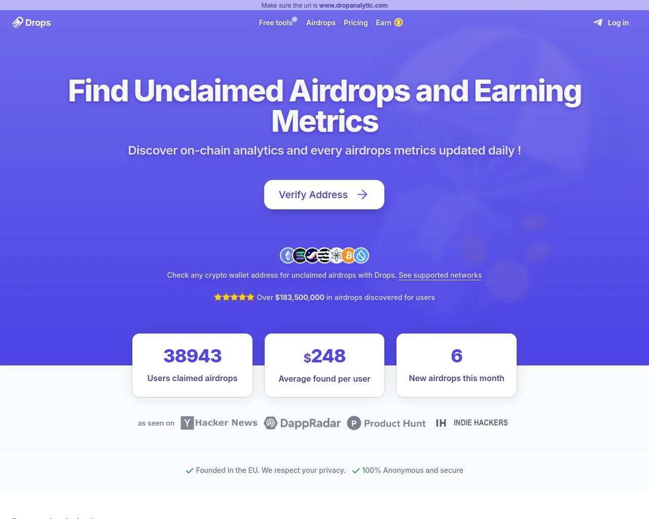 Check any wallet address for unclaimed airdrops! | Drops