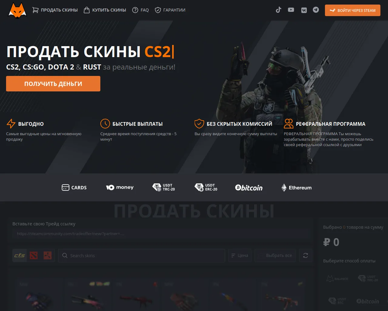 Продажа скинов КС с мгновенной выплатой - Лис Скинс