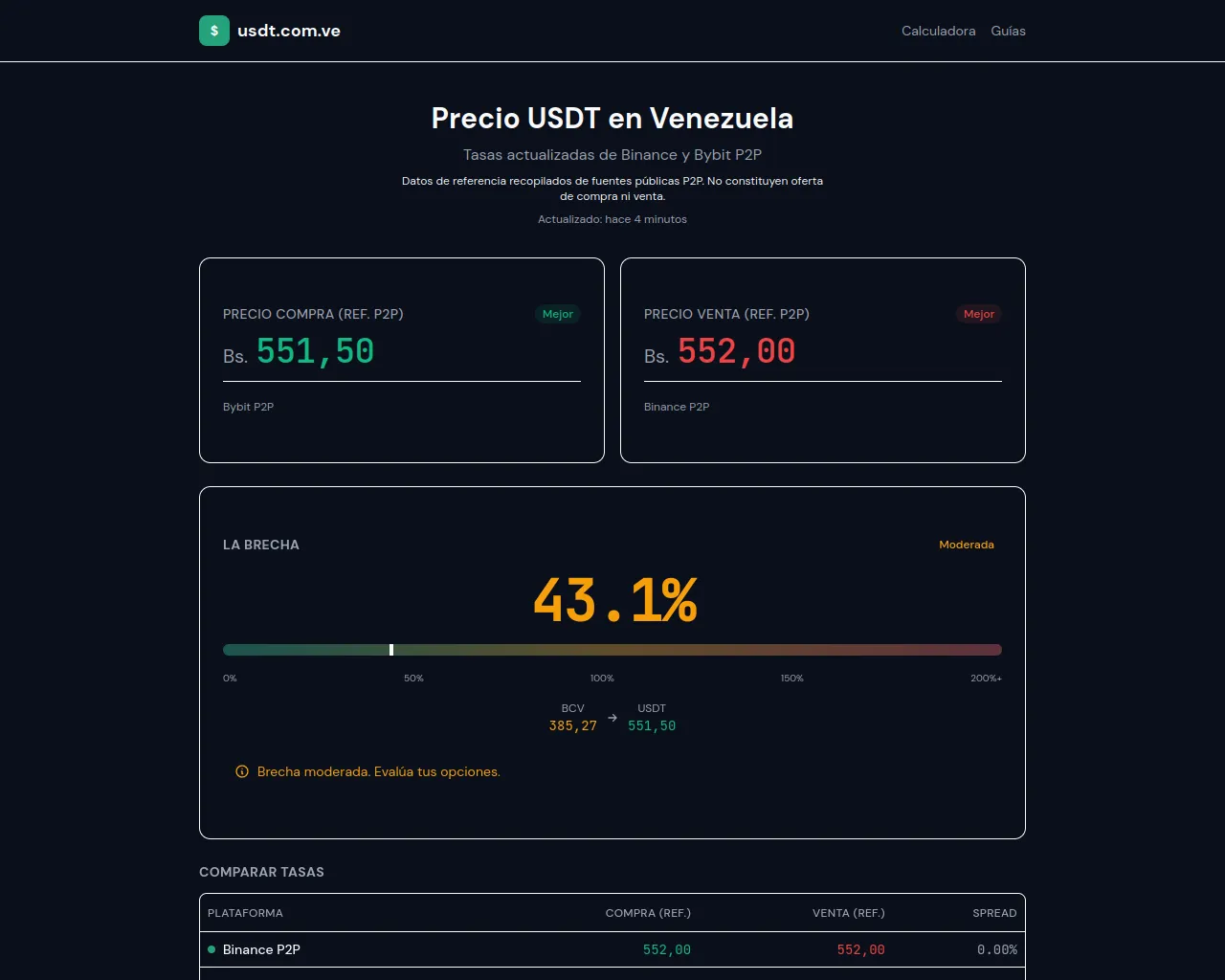 Tasas de Referencia USDT Venezuela | Compara Binance y Bybit