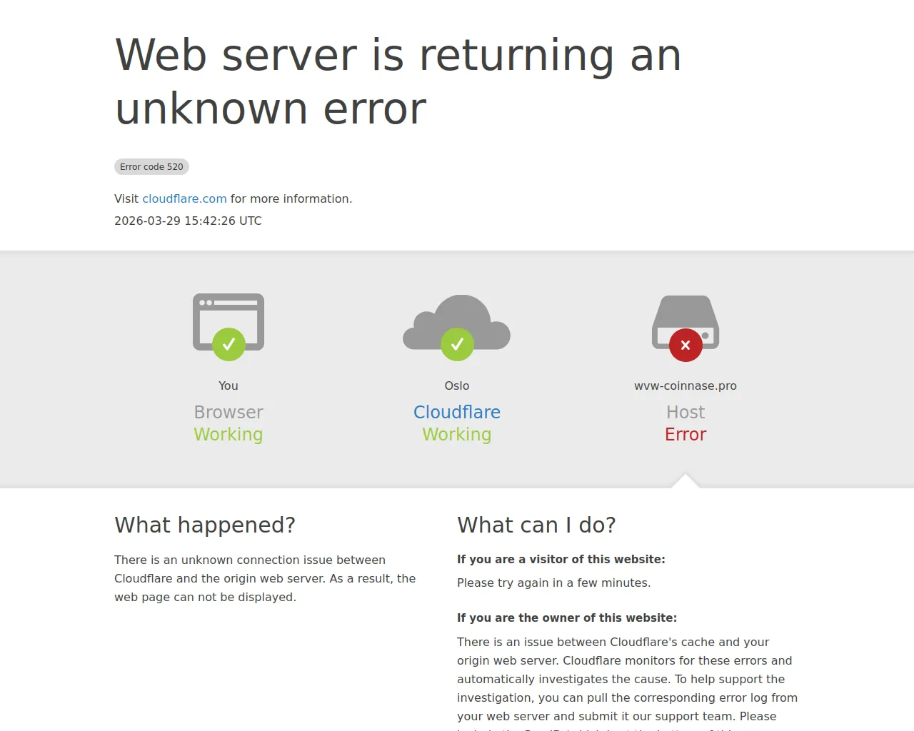 wvw-coinnase.pro | 520: Web server is returning an unknown error