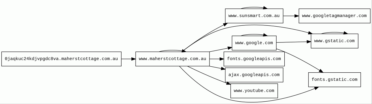 0jaqkuc24kdjvpgdc8va.maherstcottage.com.au 2 alert(s) on this Host | unknown | unknown | 2018-05-07 | 2025-09-06 | 511 B | 220 kB | ![]() 43.250.142.76 | |