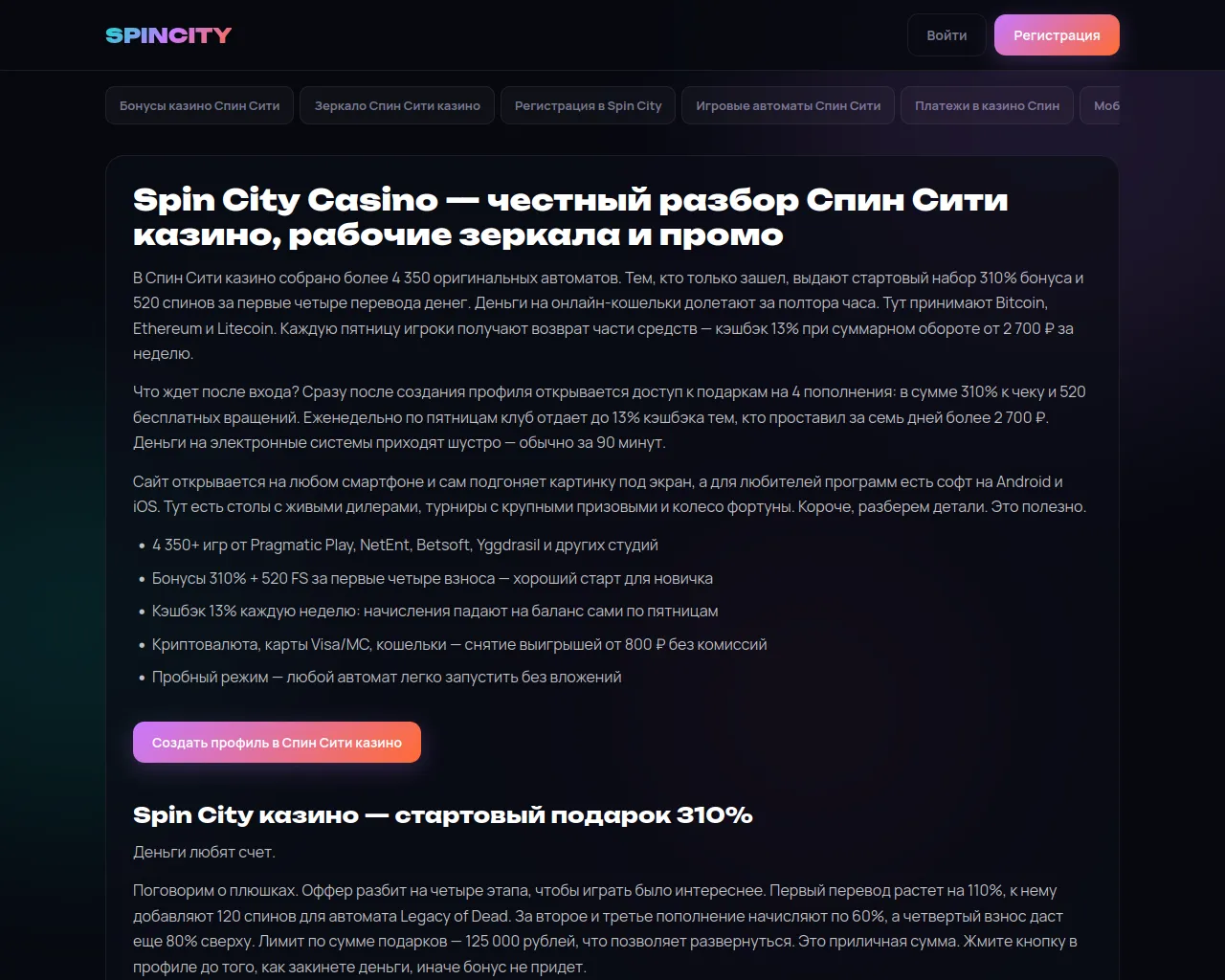 Спин Сити казино и Spin City Casino — регистрация и бонусы